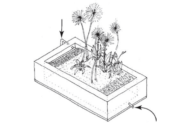 El funcionamiento del biofiltro-jardinera es muy sencillo. Tienes que conectar todas tus salidas de aguas jabonosas hacia las jardineras a utilizar. El agua pasa por una “trampa de grasas” que sirve para captar toda los residuos grasos que puedan estar contaminándola. Esa misma trampa se encarga de separar los componentes sólidos más grandes, así el filtro no se tapará. A continuación, el agua llega a la jardinera, que es de un material impermeable y el relleno se divide en tres fases. La primera y tercera fase son grava volcánica, que ayudan a distribuir el agua de forma uniforme al entrar y salir. La fase intermedia es una mezcla de tierra y arena, que estará constantemente húmeda y aquí es donde se siembran las plantas de pantano. El jabón en el agua contiene nitrógeno y fósforo y las plantas lo aprovechan. Aunque, de cualquier forma, es recomendable tratar de utilizar poco cloro y detergentes biodegradables en la limpieza de casa. El agua filtrada se puede volver a aprovechar en labores domésticas, cerrando el ciclo de reutilización.